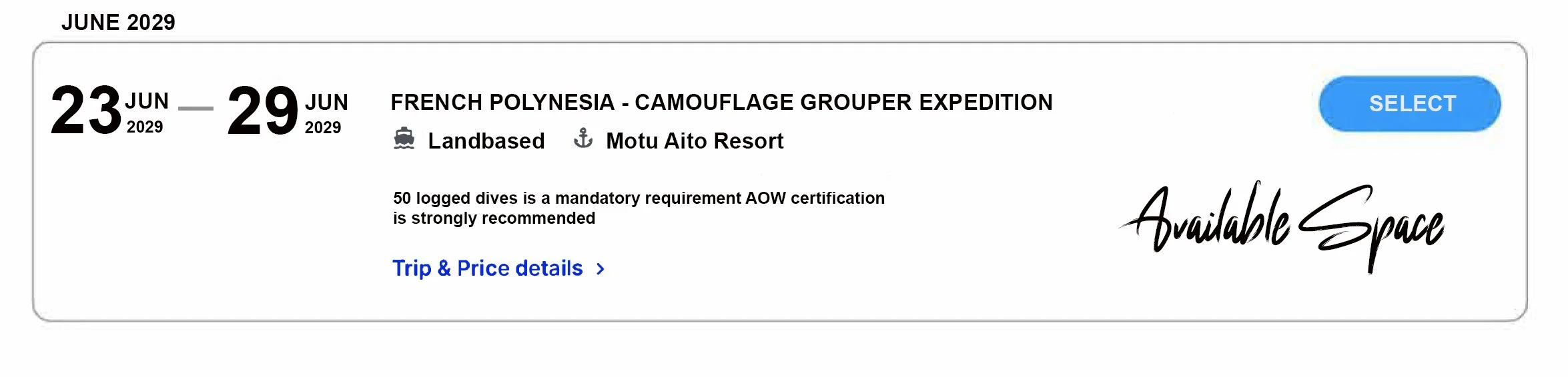 AVAILABLE DATES 2029