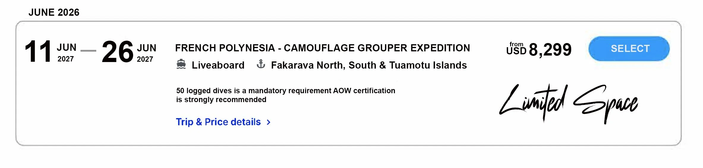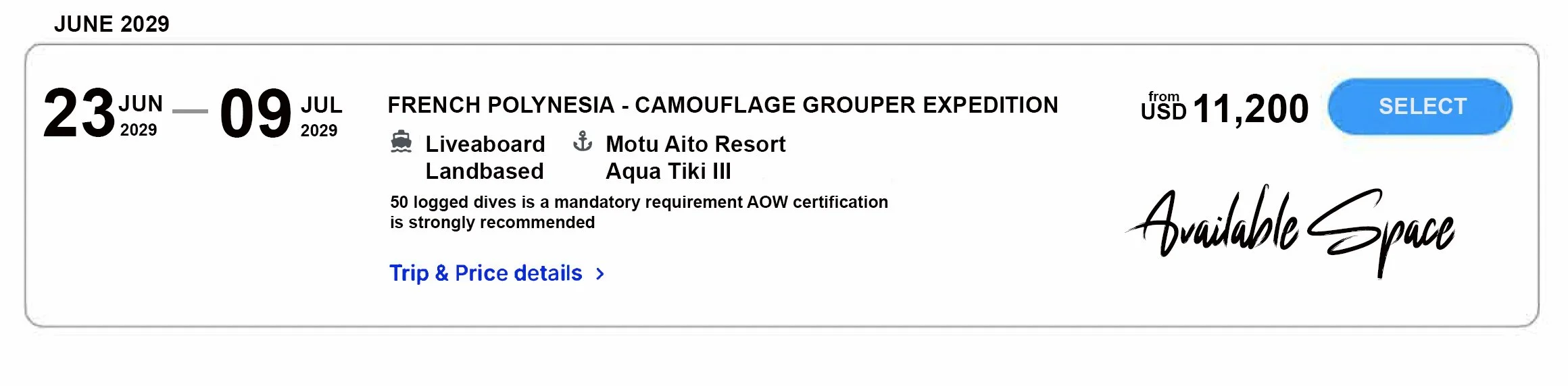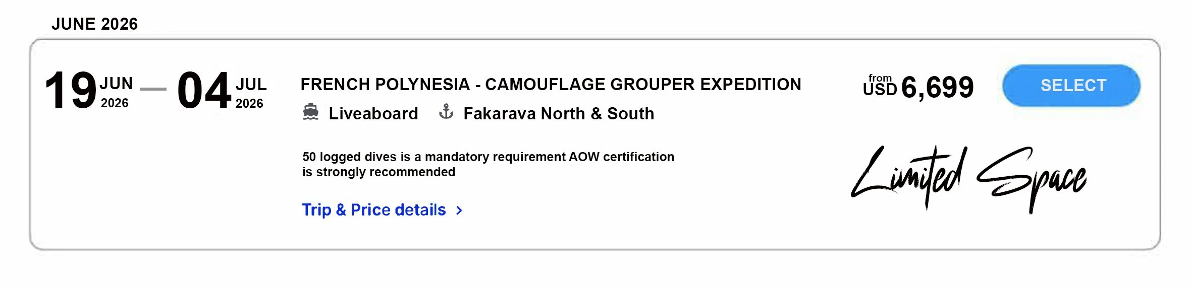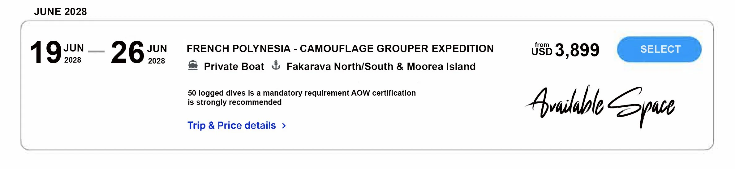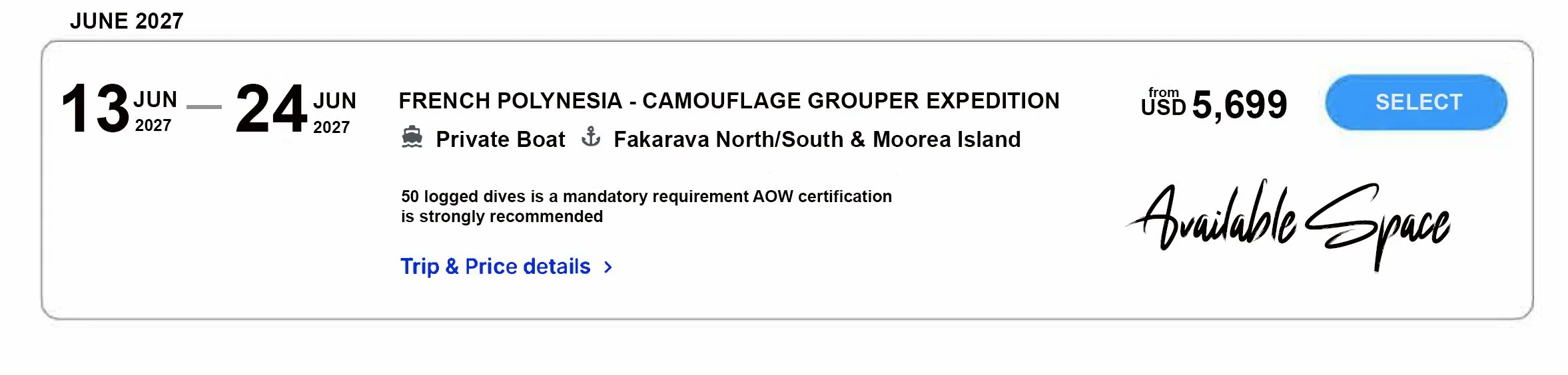 FAKARAVA GROUPER SPAWNING EXPEDITION ONLY