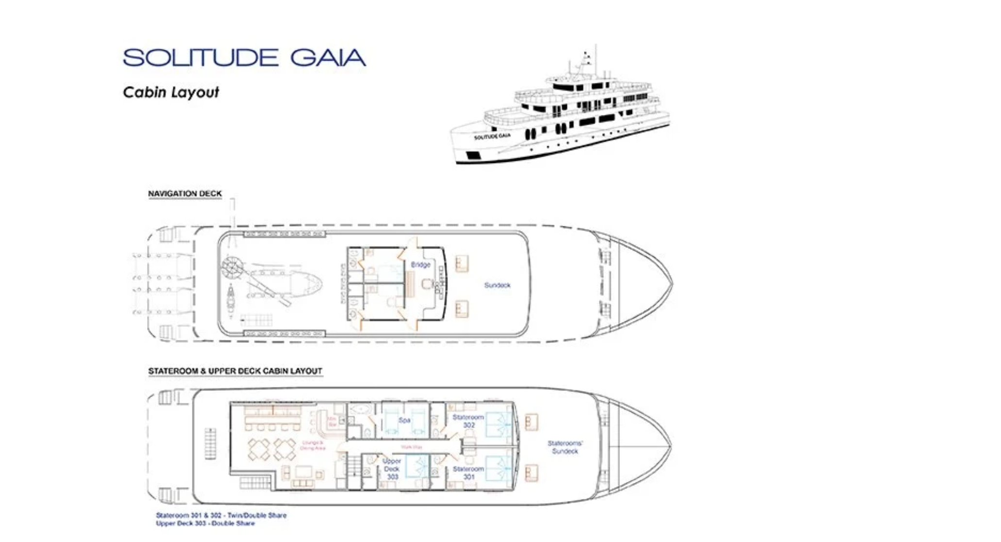 Launched in 2023, this 40-meter vessel seamlessly combines innovation and craftsmanship, boasting a robust steel hull for stability and an aluminum superstructure for added security and comfort. Beyond its structural excellence, Solitude Gaia prioritises a home-like environment, meeting the highest standards for passenger ships and inviting guests to share the profound wonder of the ocean’s depths.